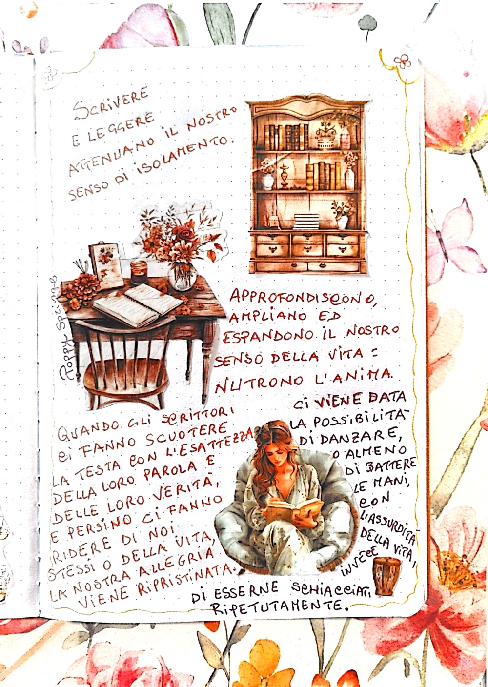 Il collage che Poppy Spring ci propone oggi è focalizzato sulla lettura e la scrittura, ispirato da una frase di Anne Lamott, celebre scrittrice, saggista e docente americana: