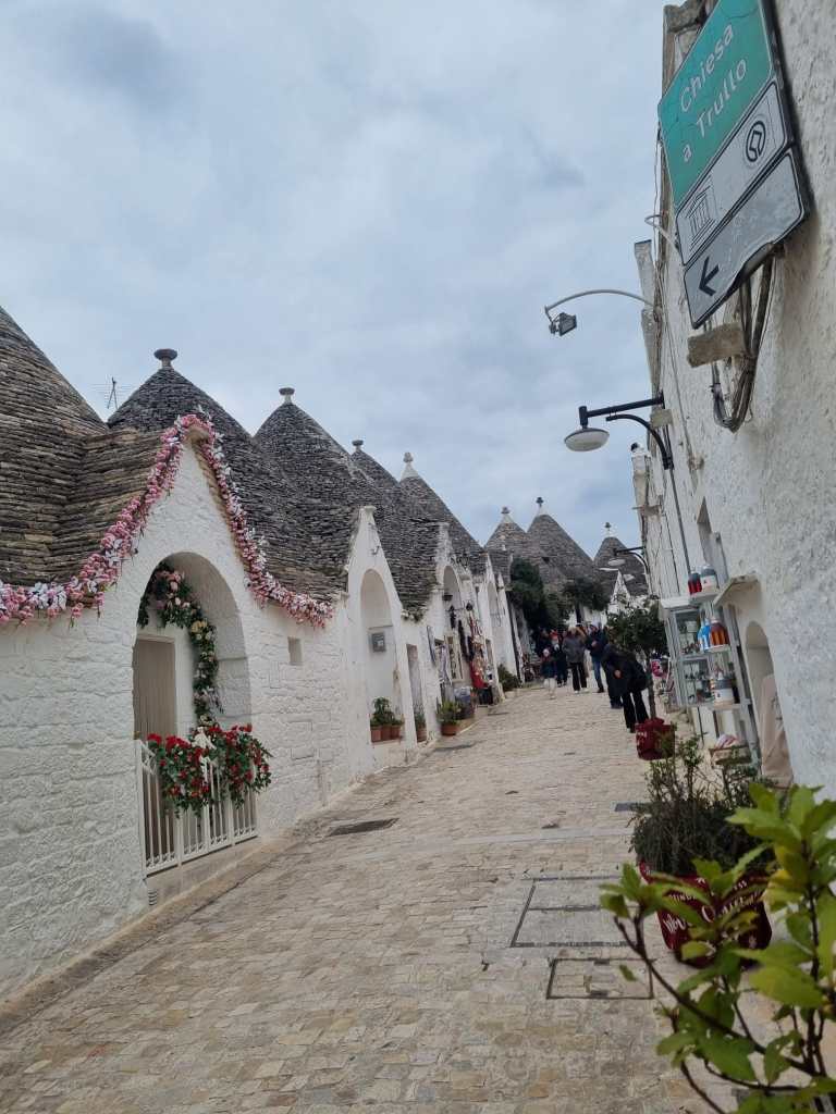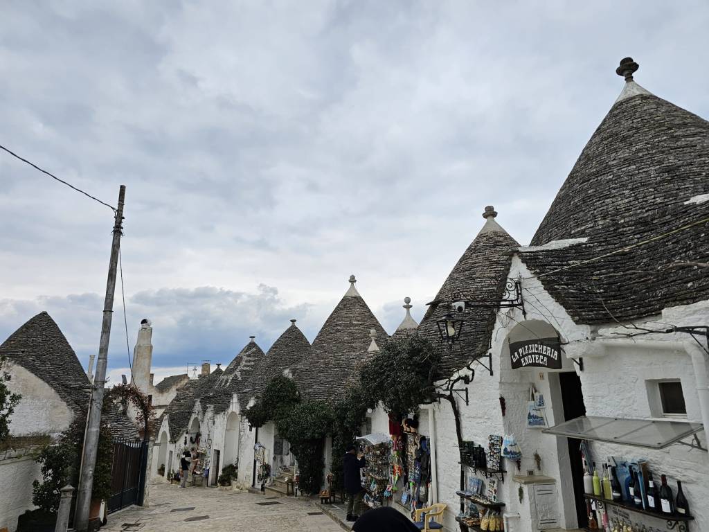 Il Rione Monti è il cuore pulsante e più famoso di Alberobello, con oltre 1000 trulli disposti su una collina che formano un paesaggio fiabesco. È la zona più turistica, ricca di botteghe artigiane, negozi di souvenir, b&b e trulli dai tetti dipinti con simboli magici. È stato bello passeggiare lungo Via Monte Pertica e Via Monte Sabotino per scoprire l’artigianato locale.