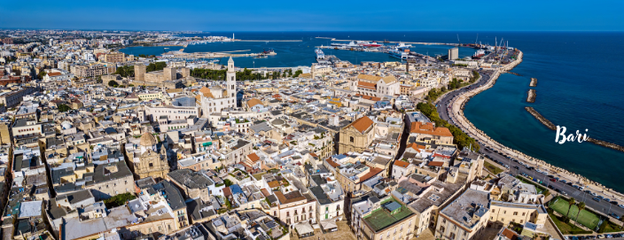 Bari è un affascinante mix di storia antica – il cuore medievale di Bari Vecchia – e modernità – lo sviluppo urbano contemporaneo. I vicoli tortuosi e le chiese romaniche del centro storico si contrappongono all’architettura murattiana (voluta da Gioacchino Murat, maresciallo di Napoleone, nel 1813 per espandere la città oltre le vecchie mura), elegante e razionale della città nuova.